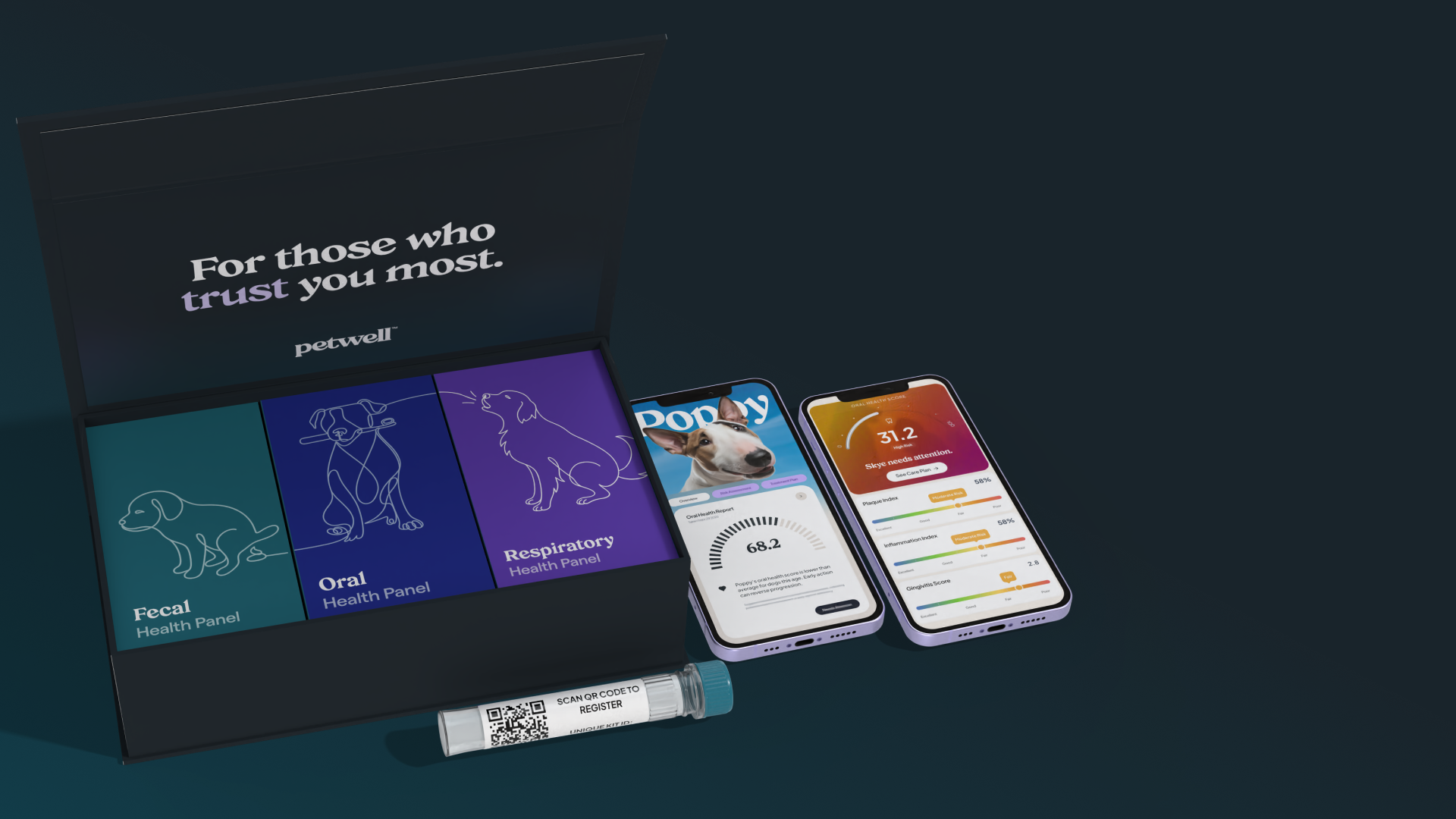 The Petwell Pack includes everything needed for at-home testing: - Fecal, oral, and respiratory sample collection tools - Step-by-step instructions - Prepaid return mailer to our certified lab - A personalized digital diagnostic report with next best actions No additional purchases required.